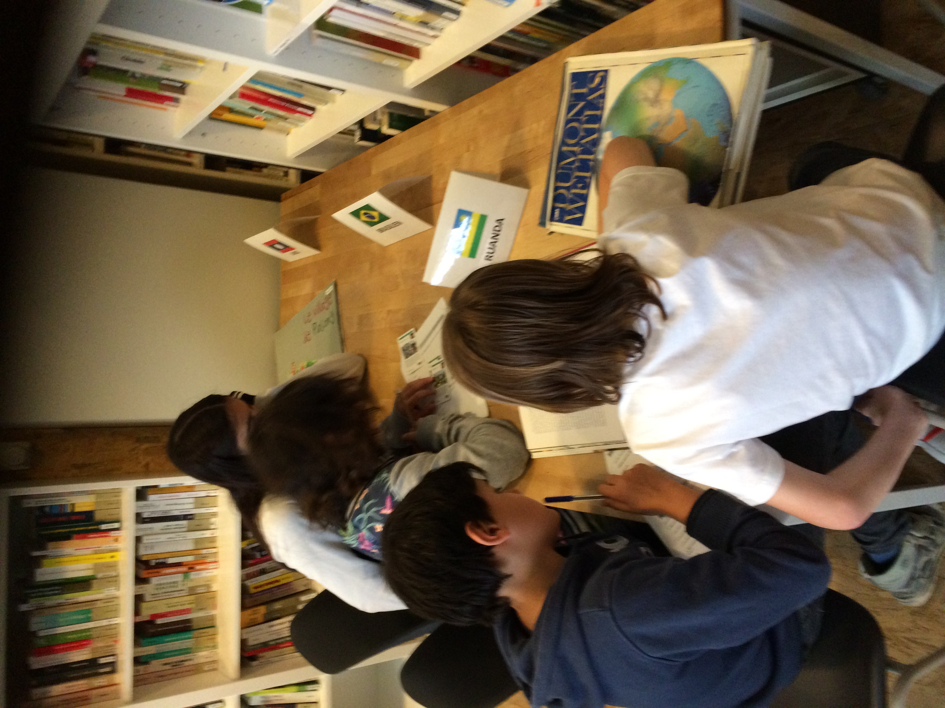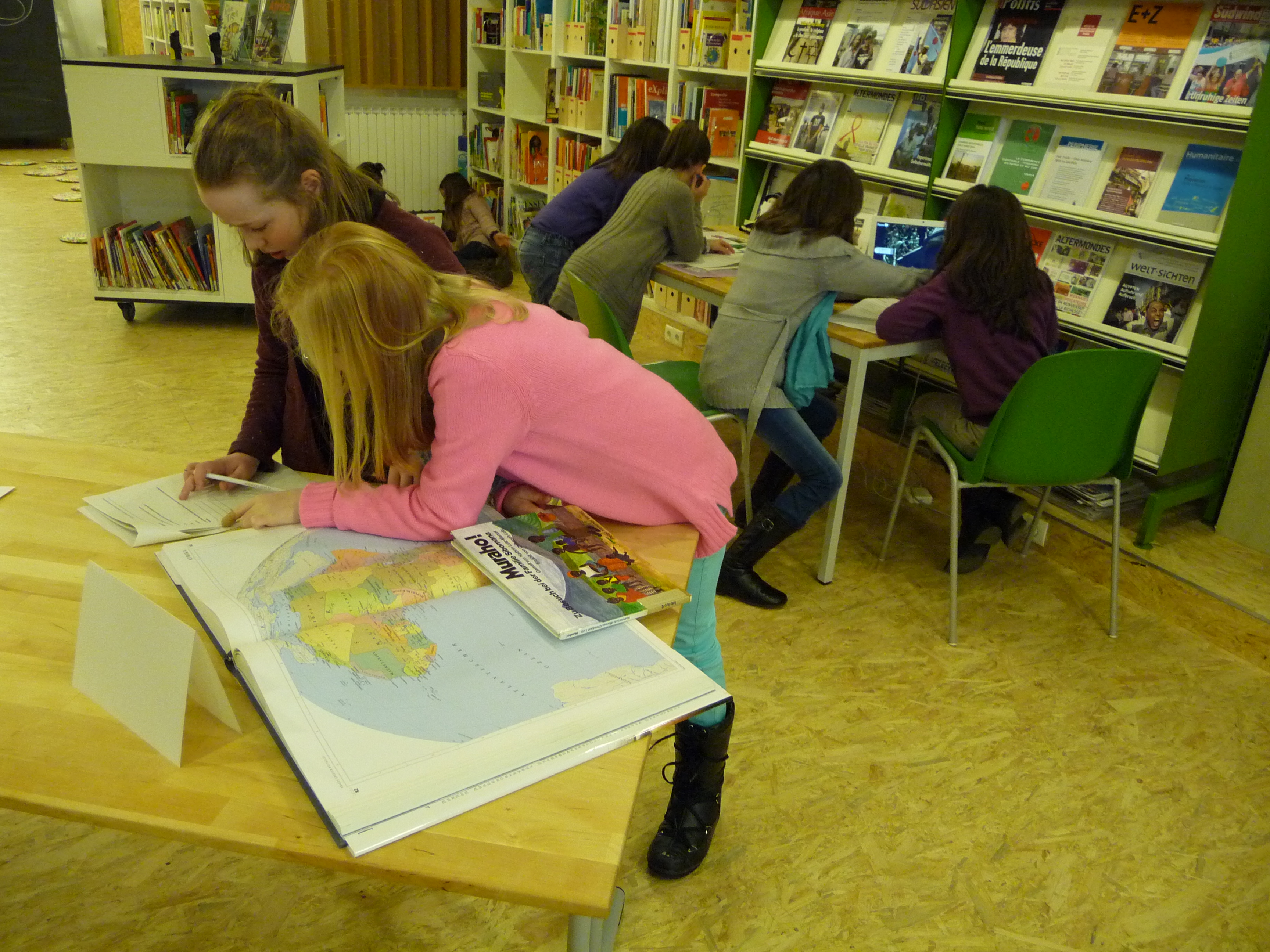 Jeweils zu zweit erkunden die SchülerInnen verschiedene Stationen in der Bibliothek und gewinnen dabei Einblicke in das tägliche Leben von Kindern in Lateinamerika, Asien und Afrika. Sie erkennen, dass es Unterschiede, aber auch sehr viele Gemeinsamkeiten gibt. Die verschiedenen Stationen sind als Länder gekennzeichnet und mit unterschiedlichen Medien (Büchern und Filmen) der Bibliothek ausgestattet. Jedes Team erhält ein Aufgabenblatt und beginnt die Aufgaben nach und nach mit Hilfe der Medien zu lösen. Ist die Aufgabe gelöst wird an einer anderen Station fortgefahren. Alle Teams versammeln sich wieder, sobald sie mit dem Durchgang der Rallye fertig sind. Gemeinsam werden die Aufgabenzettel ausgewertet und besprochen.